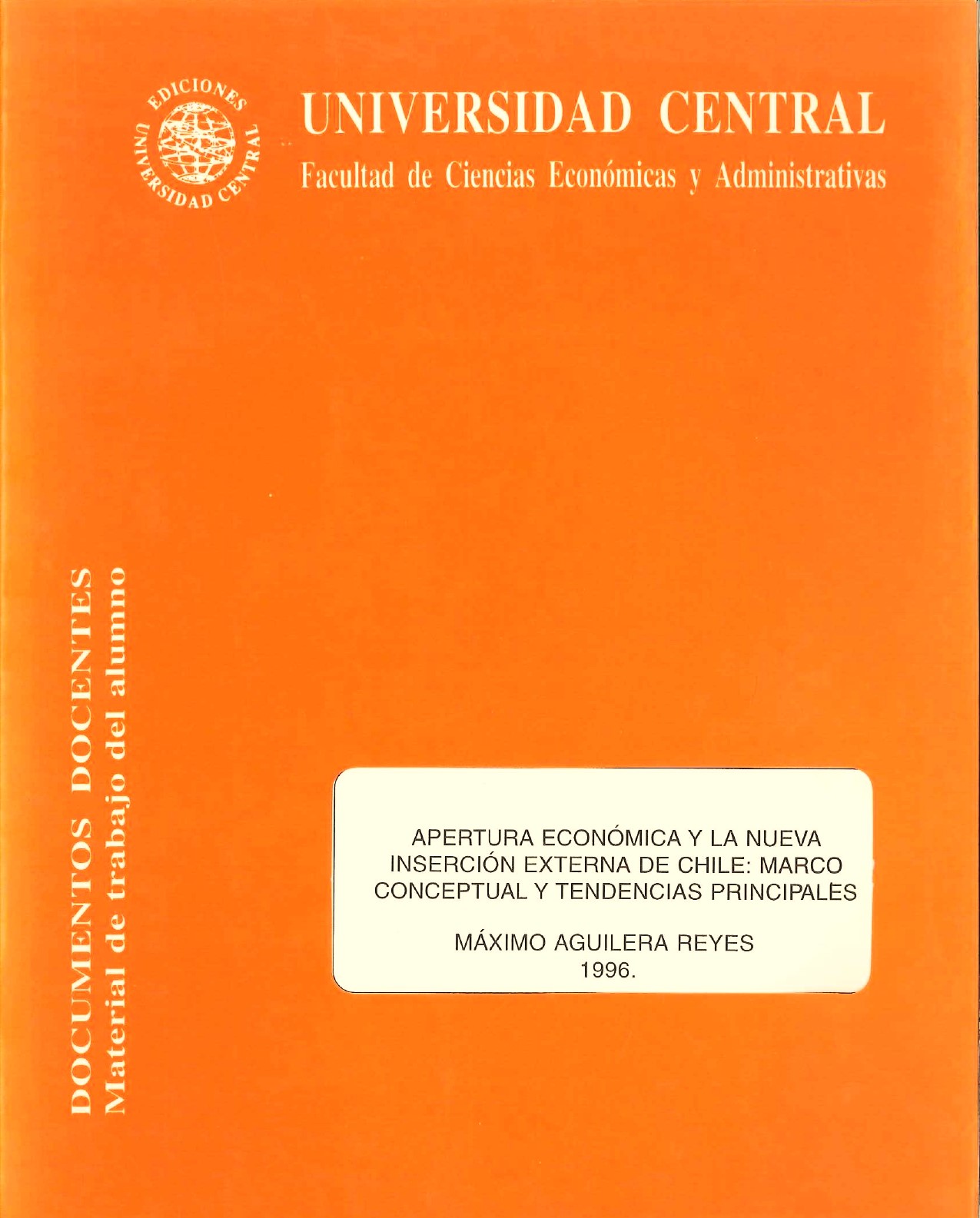 “Apertura Económica y la Nueva Inserción Externa de Chile: Marco Conceptual y Tendencias Principales “, Aguilera R. Máximo, Ediciones Universidad Central de Chile, 1996.